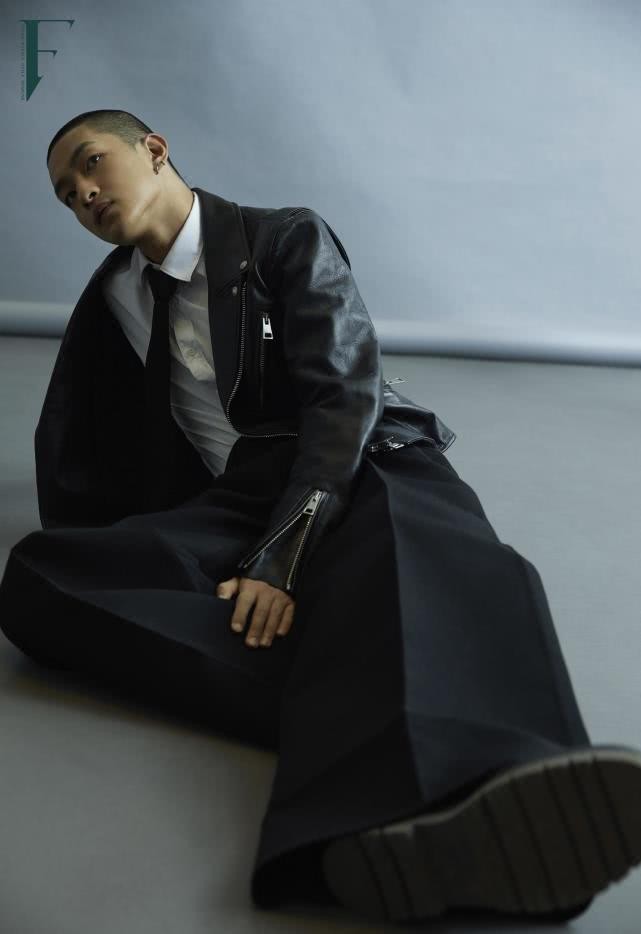寸头的造型,永不过时,让人显得十分精神,但也十分考验人的五官,不得不说,屈楚萧的五官是很不错的,头型也很好,显得清爽犀利。黑色的皮夹克里面却穿着白色衬衫,还规规整整的打上了黑色领带,还有下身的拖地西装裤,有一种不拘小节,不顾世俗的感觉。叛逆的感觉中却让人有一种很安心可靠的感觉。这样的他也确实散发着成熟魅力。