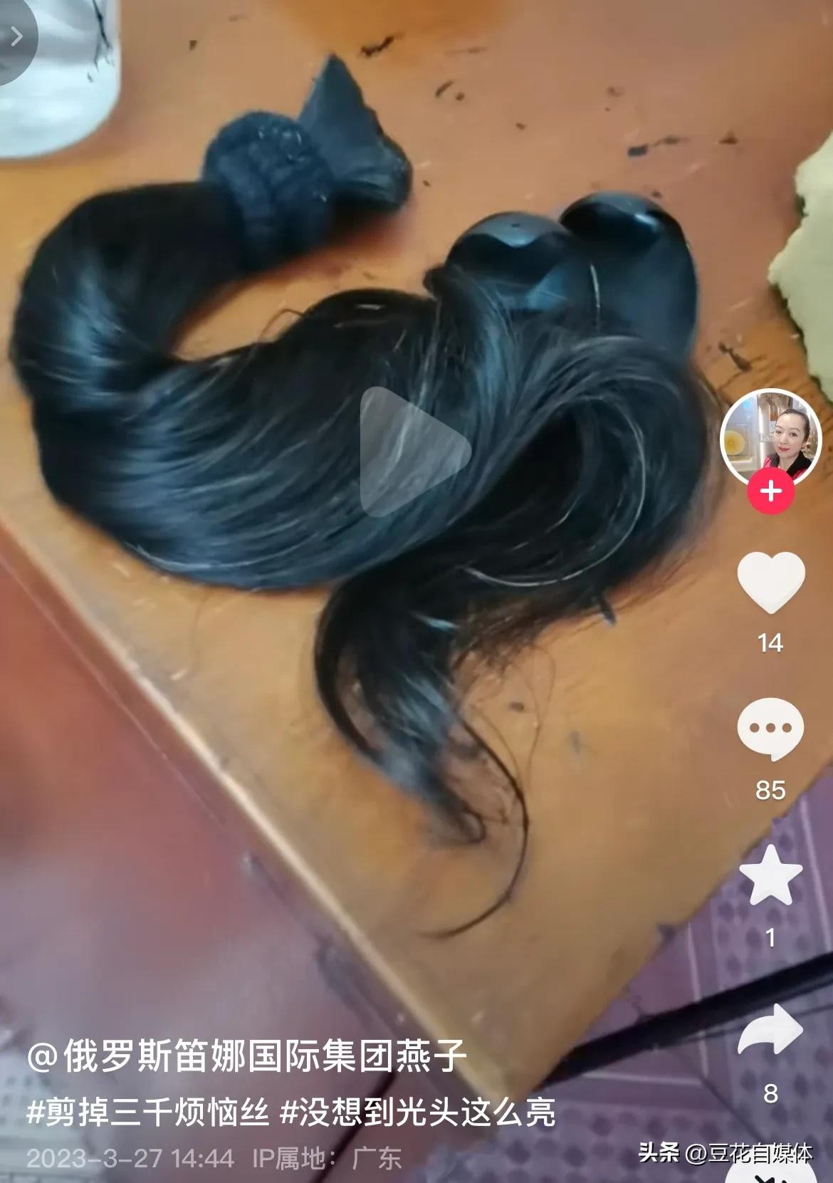 14:44燕子发布了第二条视频,配文“剪掉三千烦恼丝”