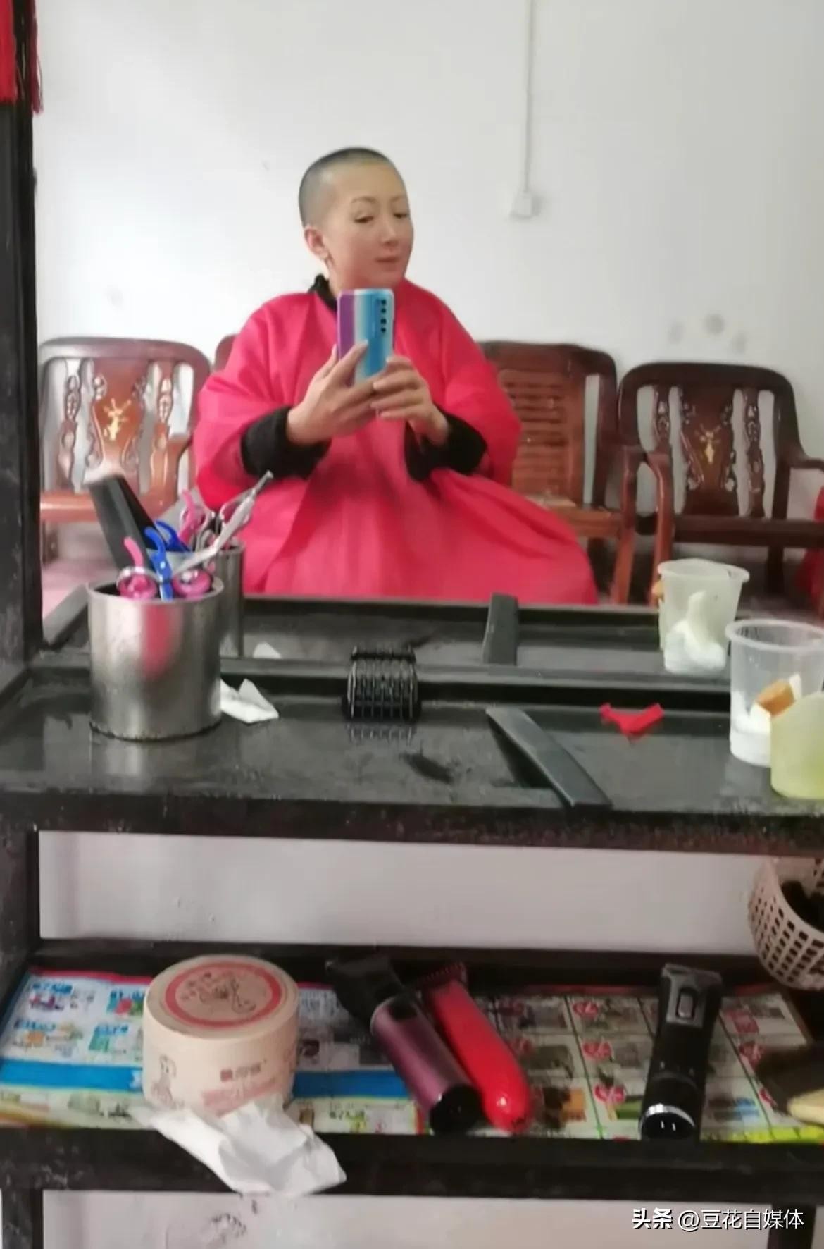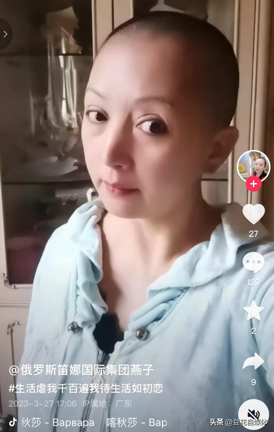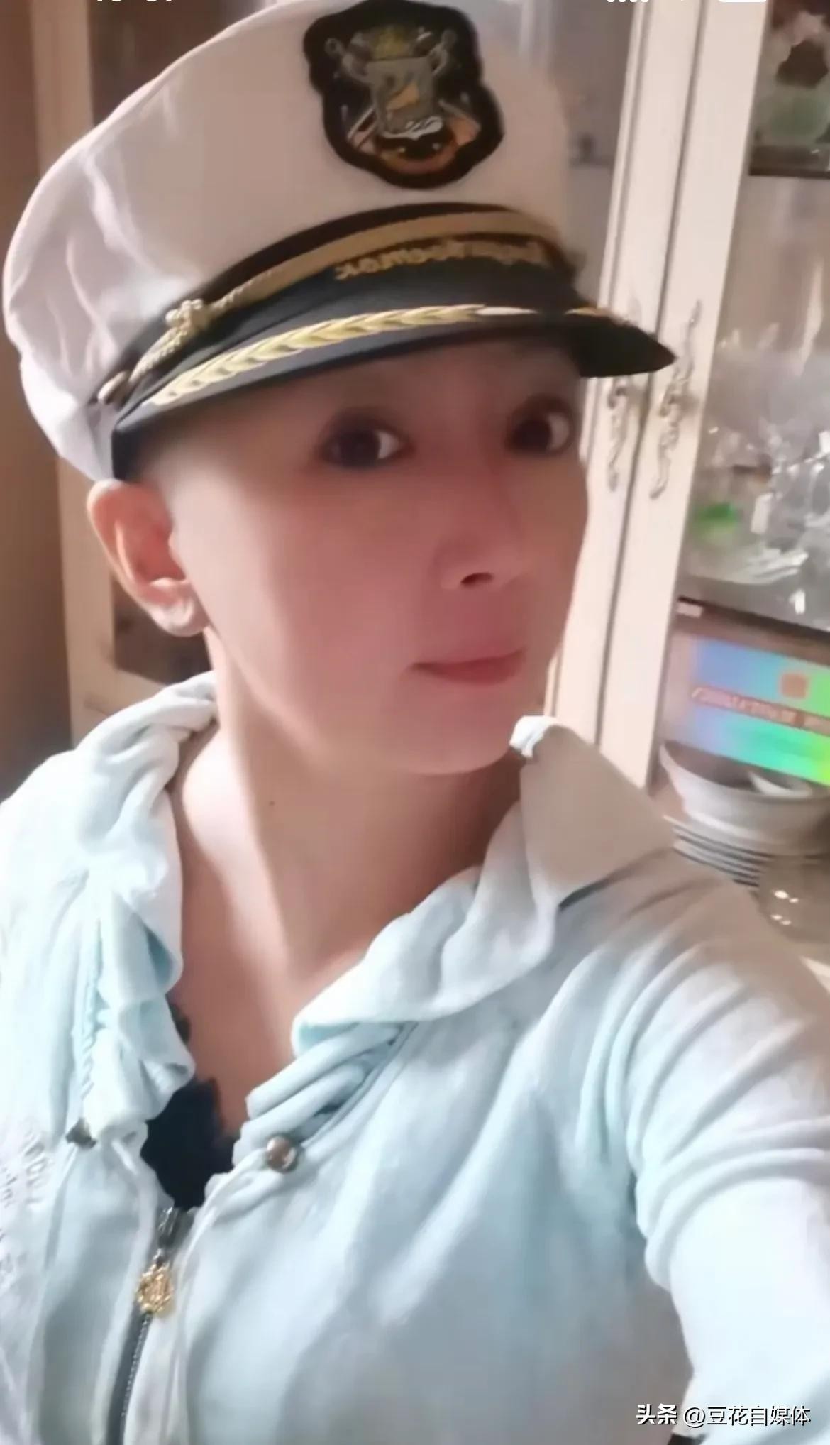 视频中的她一身干净家居服,明显是洗漱了一番,最吸引人的依旧是她那锃光瓦亮的光头。