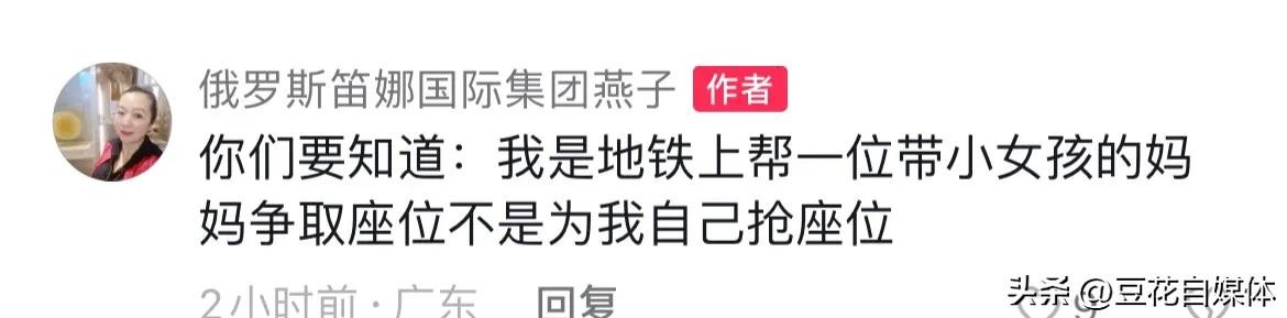 她说:“你们要知道:我是地铁上帮一位带小女孩的妈妈争取座位不是为我自己抢座位”