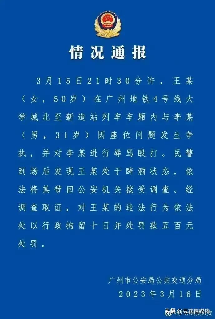 3月16日,广州公安发布通告,对打人的燕子进行拘留10日,罚款500的惩戒。