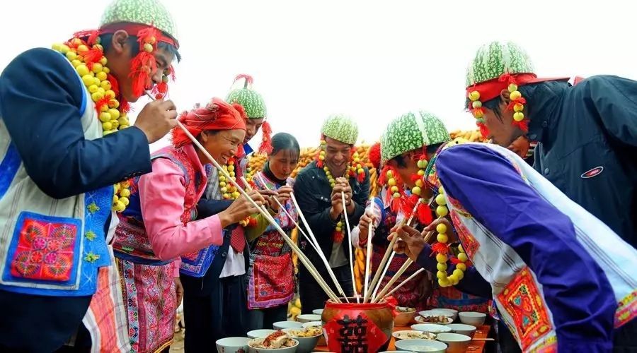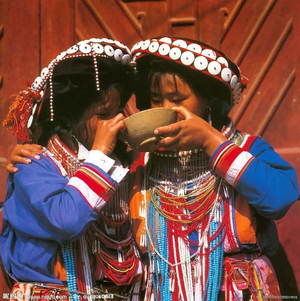 小编重点跟大家说说僳僳族的“同心酒”:两人共用一个酒具,或并立、并坐、并跪、并蹲,或长坐幼蹲,或幼跪长坐,彼此搂肩交颈,耳磨脸贴,一个用左手,一个用右手,一起持杯(筒或碗),嘴凑在一起,同时饮酒,乃称同心酒。