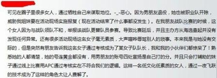 爆料人士还说到,这个女人曾经和多名职业选手发生关系,并且谋取利益,包括她的工作和人际关系,后来因为男朋友退役,她也被职业队开除。威胁我朋友要在活动现场实施报复(现在活动结束了什么事都没发生)。