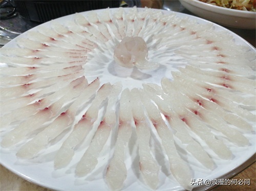 选用肉厚刺少的青竹鱼,鱼肉莹白如雪、玲珑可观,鱼肉的肌肤纹理,纤毫毕见。鱼片切得薄如蝉翼,配上鱼腥草、柠檬、紫苏叶、薄荷叶、海草、生姜丝、红萝卜丝、酸橘、大蒜、酸姜等20多种作料,吃一片鱼生,喝一杯酒,是怎样的美味人生啊!