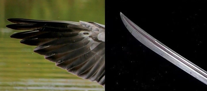 雁翎刀,顾名思义,刀刃形如大雁的翎毛。老祖宗起的名可以说是非常有画面感了,看这大雁的翅尖上的羽毛,是不是十分的形象?