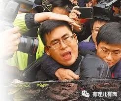 19日清晨,台北地方法院检察署调查官一行围堵在王炳忠的家门口,对峙40余分钟后调查官破门而入,并强行搜索王炳忠的住处,后于中午11时左右将王炳忠带走,有照片曝光王炳忠遭受锁喉被强行押入车内。