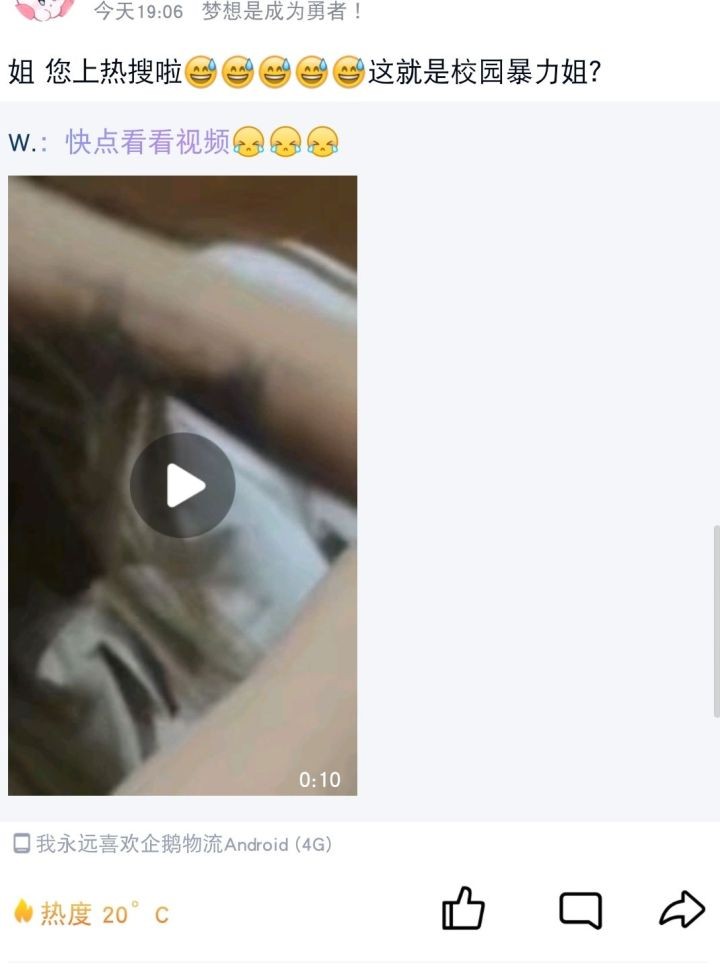 今天还会想写是因为最近网上爆出有女生被校园霸凌然后跳楼的事情,不知道大家知道吗?#安徽歙县警方回应疑似未成年人欺凌视频#,鹏鹏虽然没有吃全瓜,但是看到网友发出来的一些截图,真的气的不行,明明十三四岁的年纪,正值青春年少,为何会以欺辱他人为快?可悲的是被欺凌的女孩跳楼了,而且霸凌人甚至发给其母亲欺凌他人视频,其母亲反应似乎是见怪不怪,真服了: