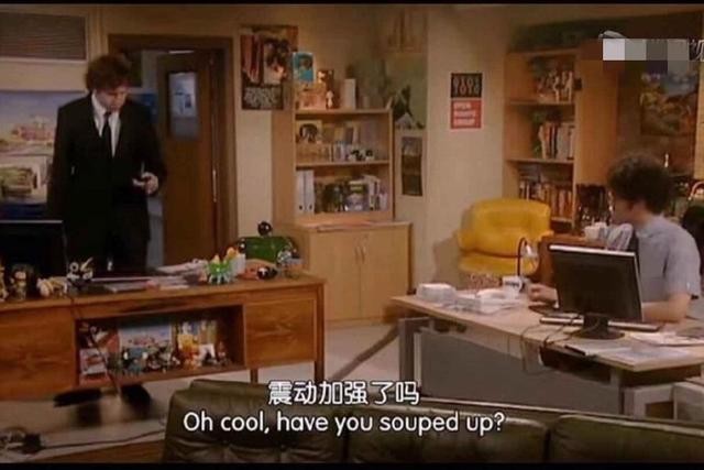 第19分钟,吕子乔的山寨机超级震动也被diss是抄袭了《IT狂人》罗伊德手机震动梗。