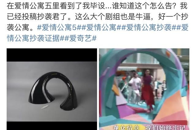 然而《爱情公寓5》可不止摊上这些事,有一位网友甚至发文直指爱5抄袭了自己的毕业设计。该网友放出了《爱情公寓5》中一个场景的剧照,并放出自己的毕业设计图,表示爱5是抄袭了自己的毕设,还直接diss爱情公寓是“抄袭公寓”。