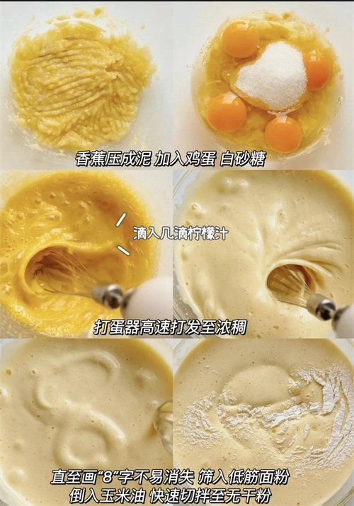 香蕉+鸡蛋+低筋面粉,180℃烤20分钟,外脆内软超治愈!