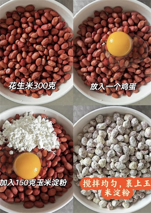 花生烤熟后裹糖浆,撒玉米淀粉防粘,比外面买的更酥脆!