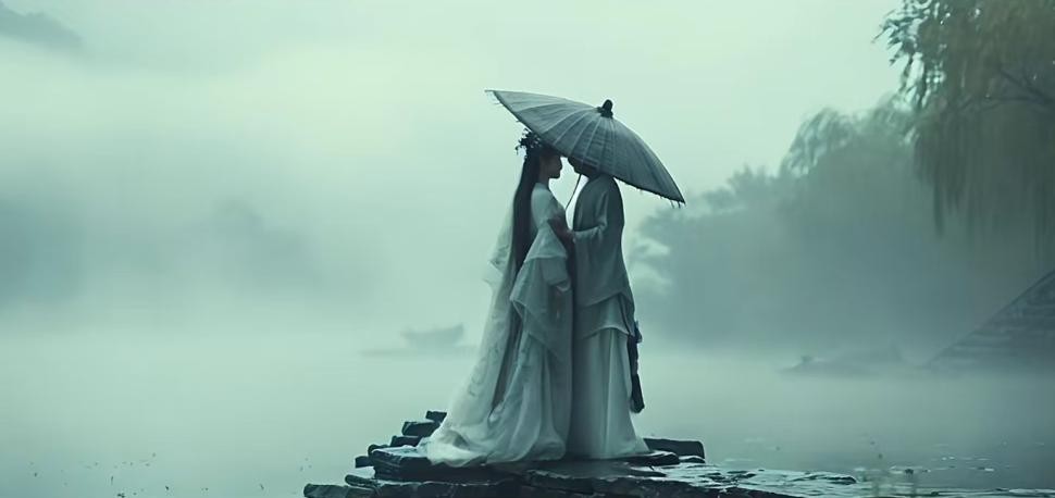 《大话大话西游》作为短剧精品之作,其画面质感和制作水平获得不少用户认可,“张天爱白衣妆造很美,适合女侠身份”“虽然是短剧,场景搞出氛围感”。该剧采用横屏拍摄,更匹配影视剧观众习惯的景框。剧中有一幕男女主在烟雨朦胧中渐渐靠近,画面意境十足,在场景上的表现力不输长剧。