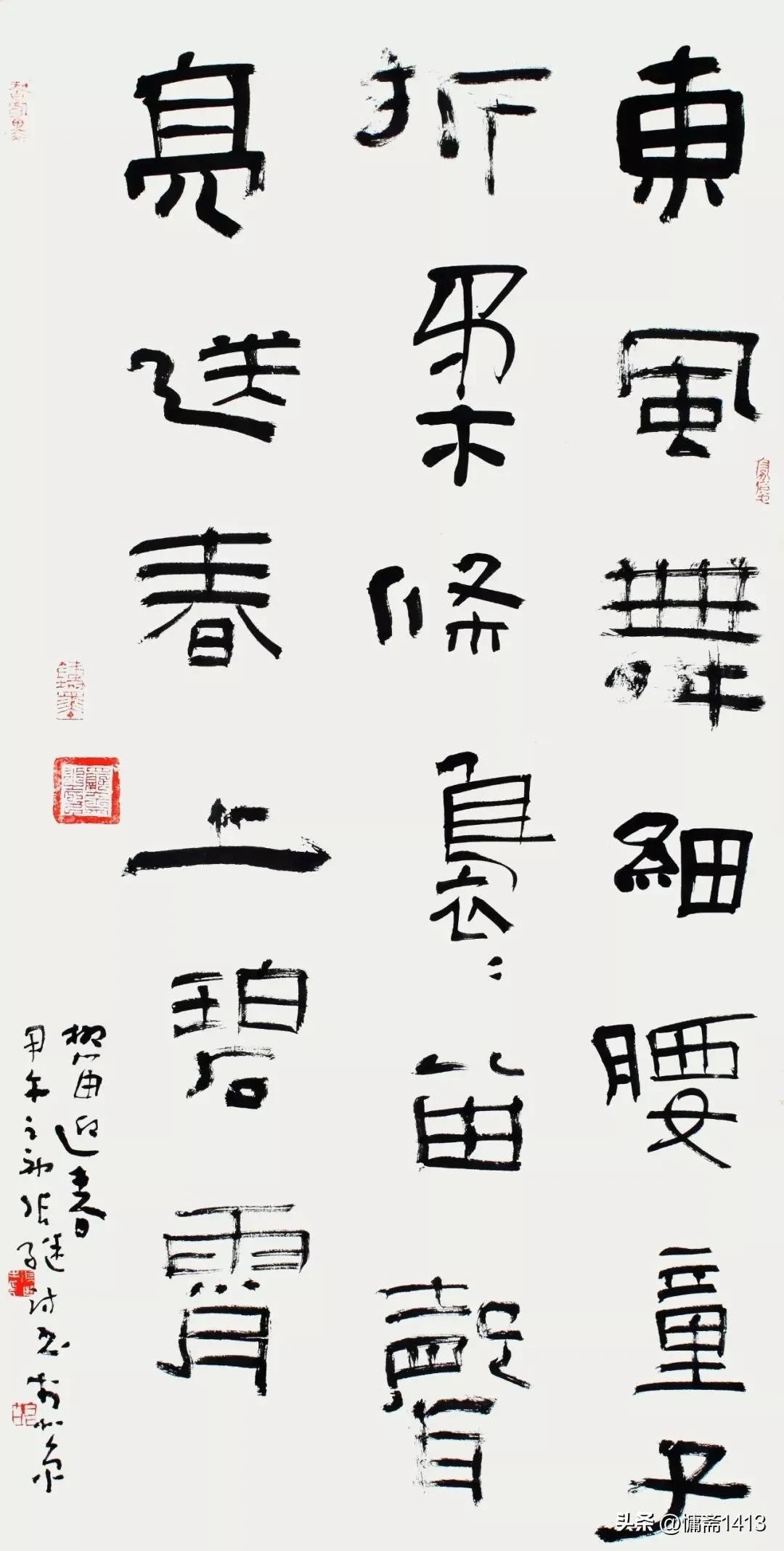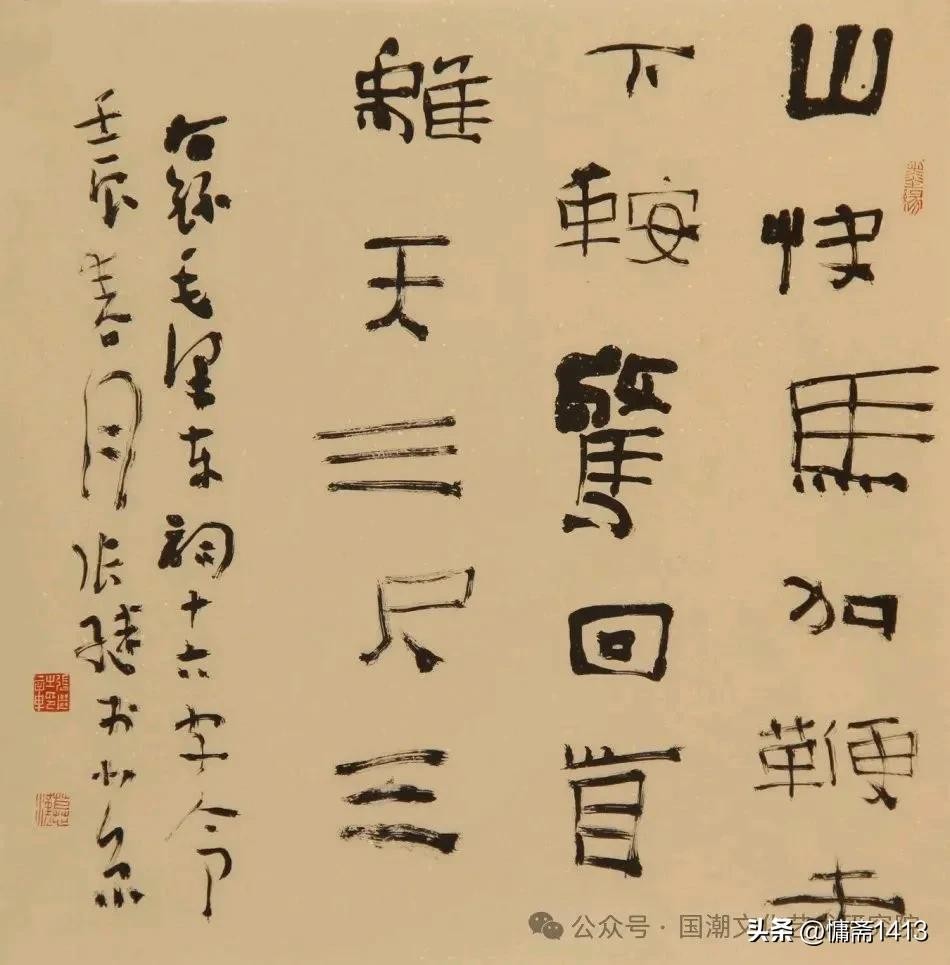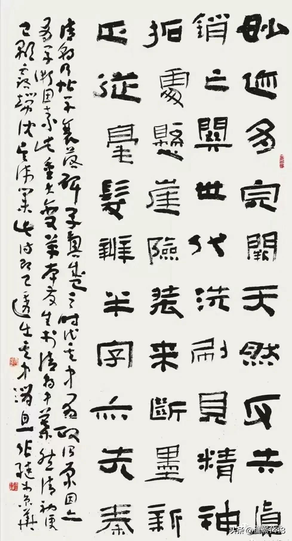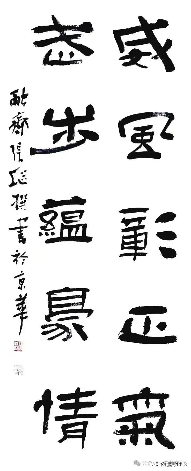 张继的隶书个性强烈鲜明有自己独特的艺术语言。是当代隶书的领军人物。近20年来,隶书的大方向几乎都是以刘文华,张继的风格为创作导向。学这两个人作品的人特别多,也容易入展获奖。张继在第六届兰亭奖获得书法创作最高奖。后来由于曹某某的强烈反对,金奖空缺,但不耽误张继是那一届的第一名?