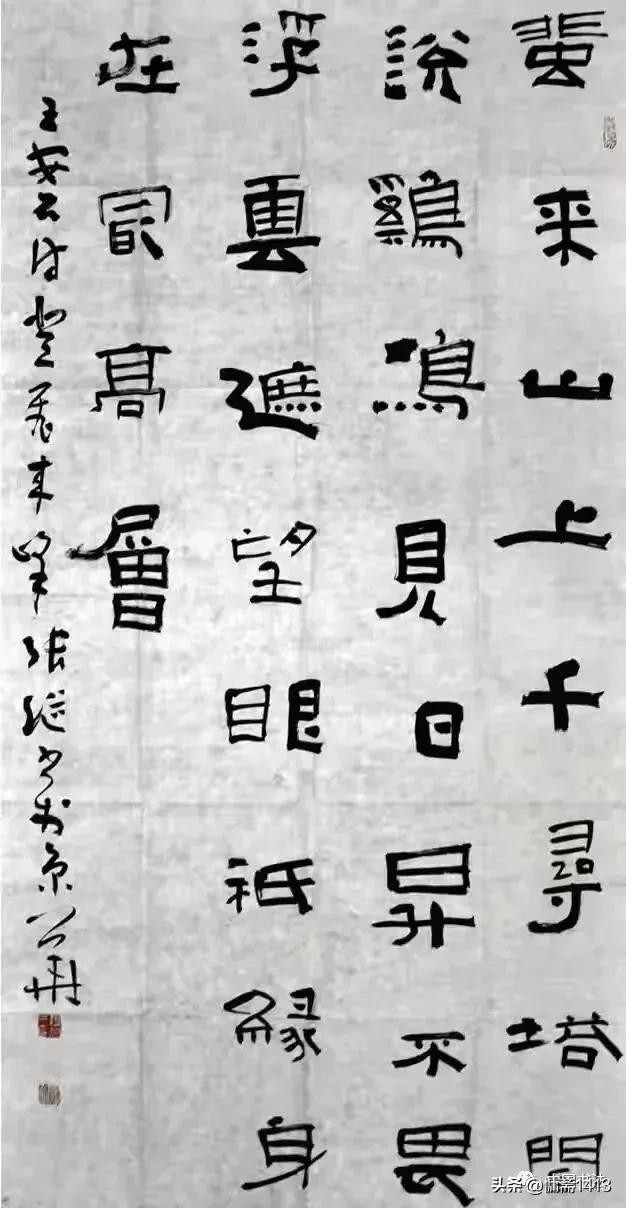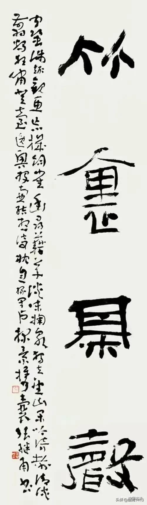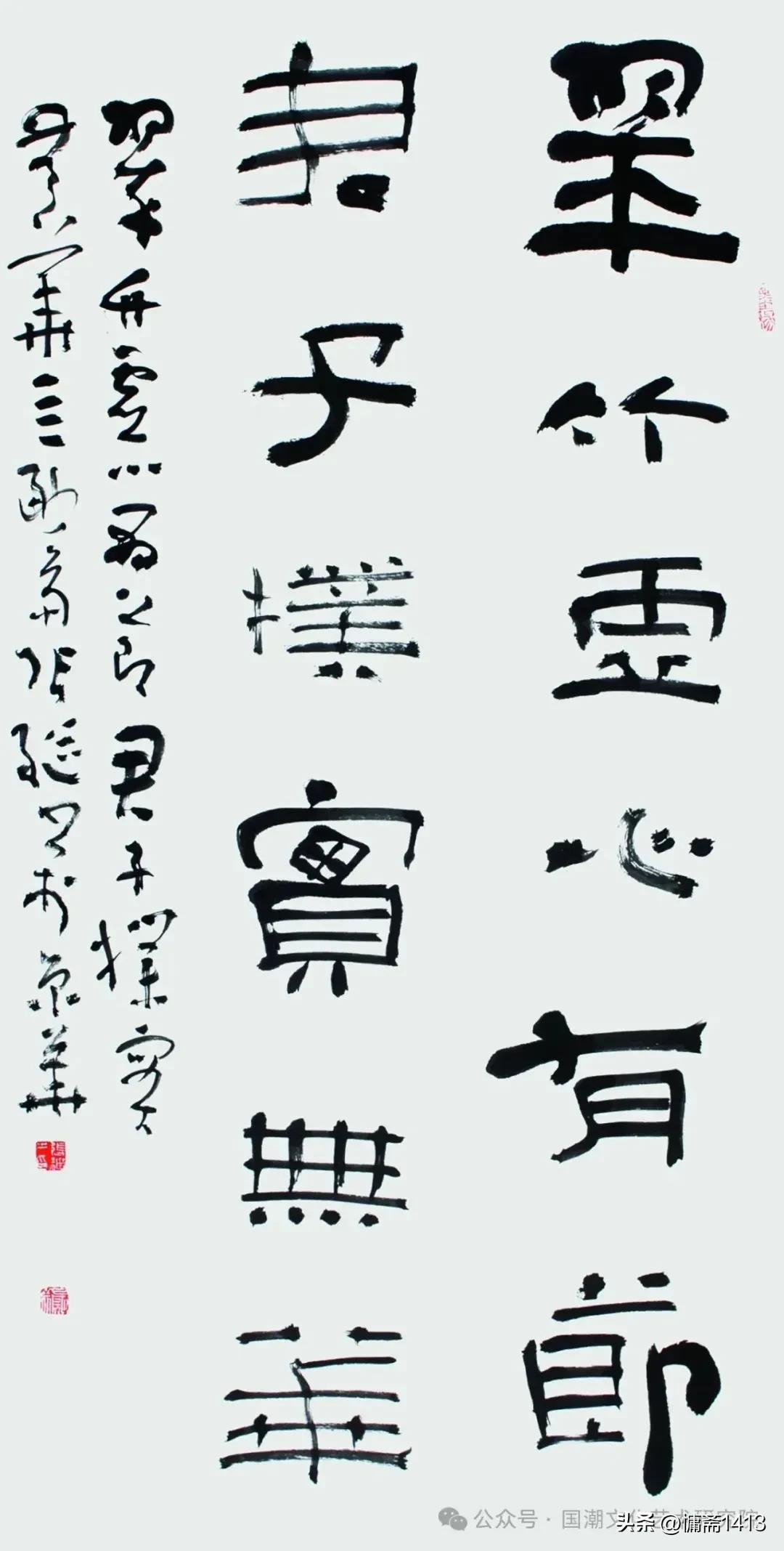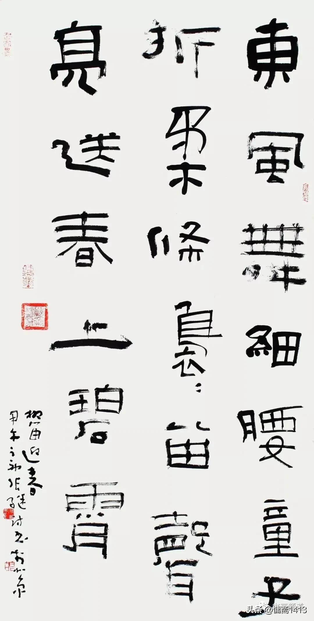 张继的隶书个性强烈鲜明有自己独特的艺术语言。是当代隶书的领军人物。近20年来,隶书的大方向几乎都是以刘文华,张继的风格为创作导向。学这两个人作品的人特别多,也容易入展获奖。张继在第六届兰亭奖获得书法创作最高奖。后来由于曹某某的强烈反对,金奖空缺,但不耽误张继是那一届的第一名?