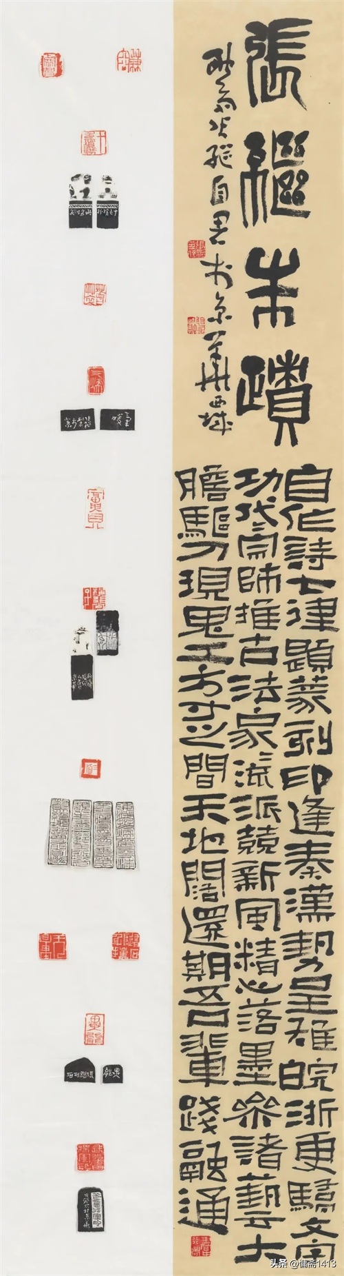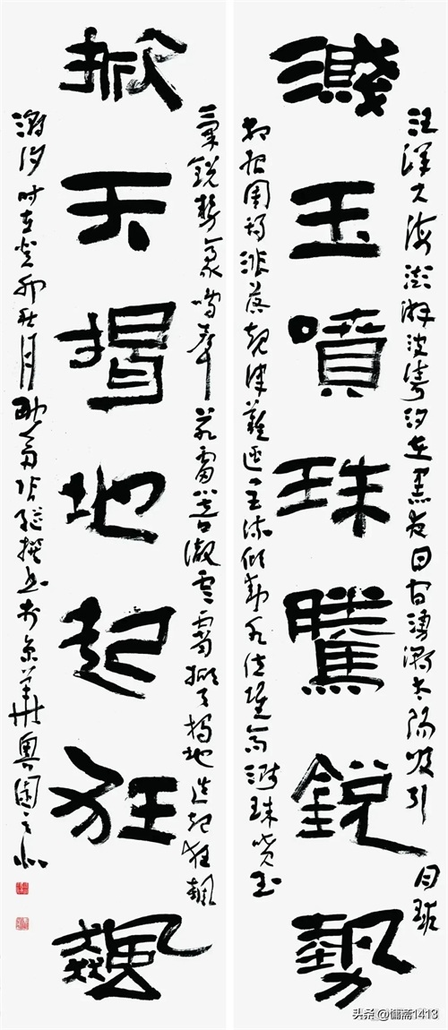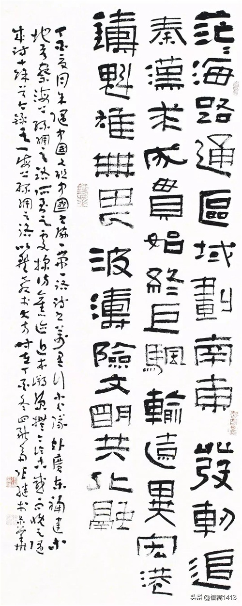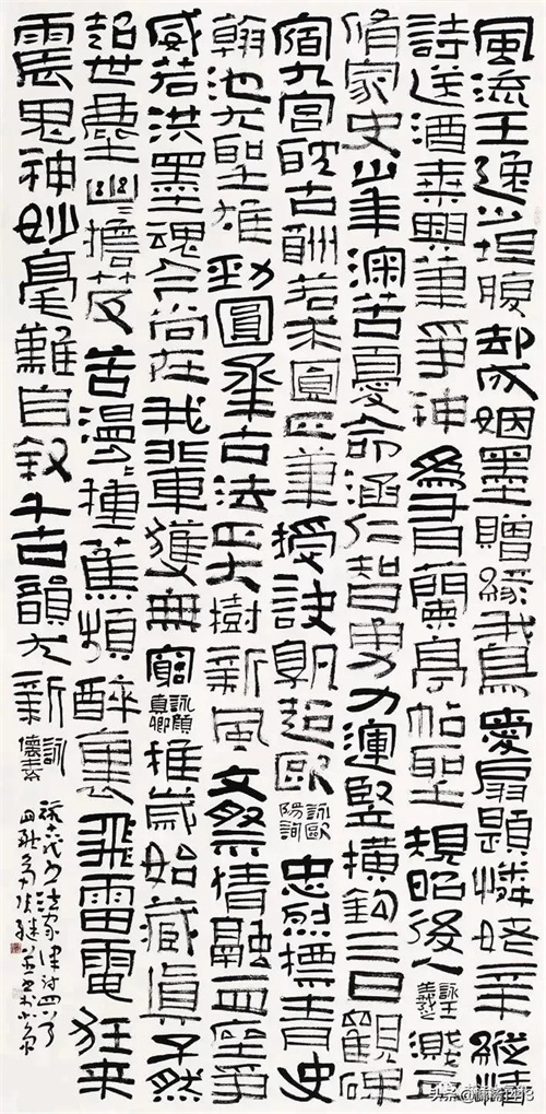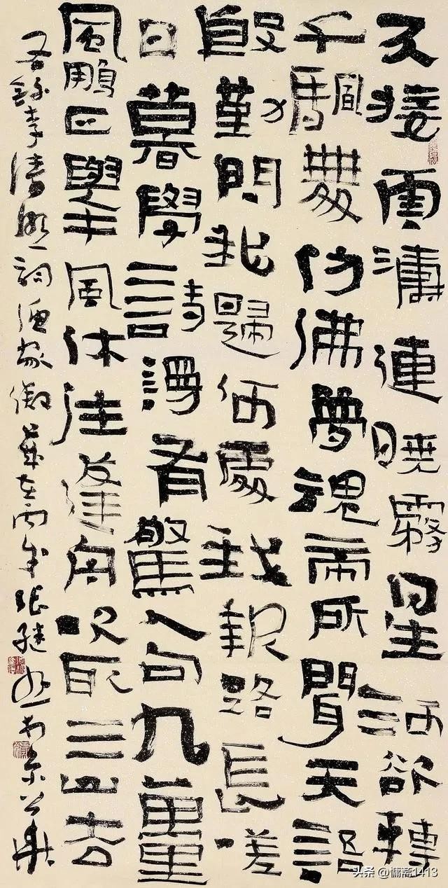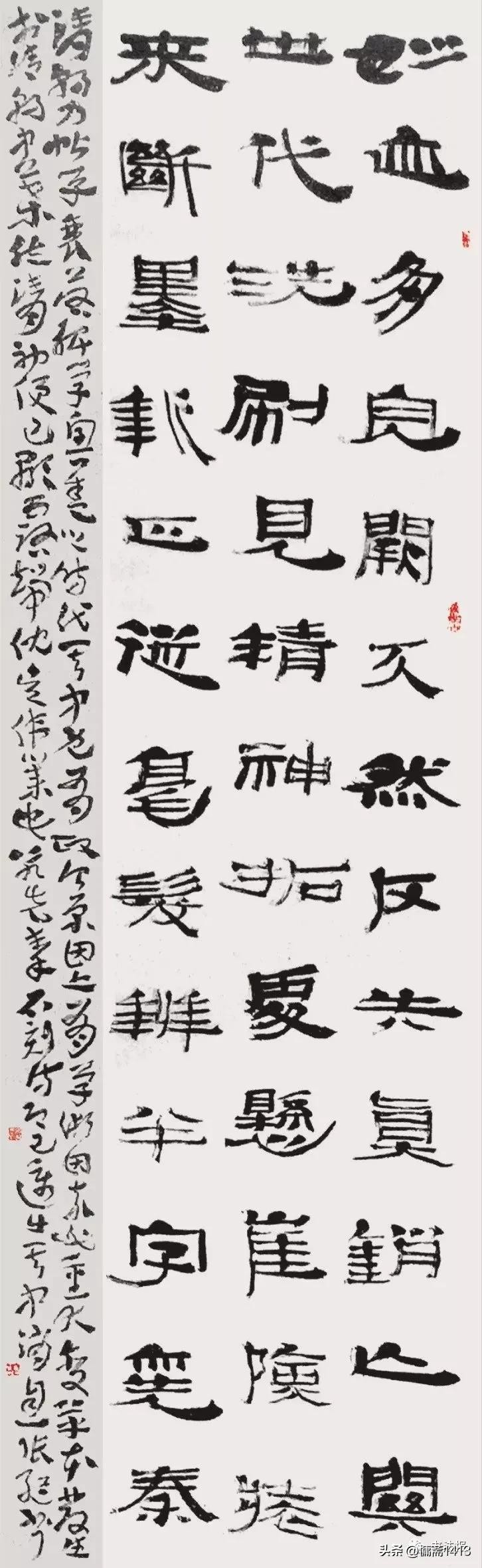 张继的隶书个性强烈鲜明有自己独特的艺术语言。是当代隶书的领军人物。近20年来,隶书的大方向几乎都是以刘文华,张继的风格为创作导向。学这两个人作品的人特别多,也容易入展获奖。张继在第六届兰亭奖获得书法创作最高奖。后来由于曹某某的强烈反对,金奖空缺,但不耽误张继是那一届的第一名?