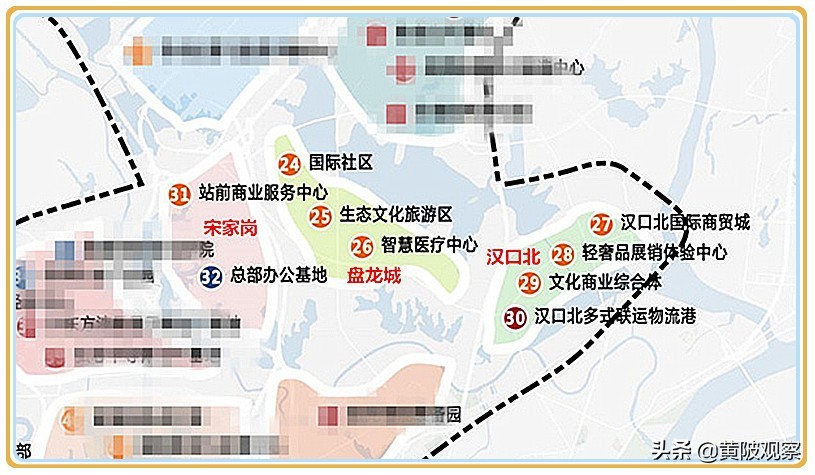 2019年,湖北出台武汉航空港规划,汉口北也被纳入武汉航空港之中,规划里,汉口北被分为四个区域,分别是: