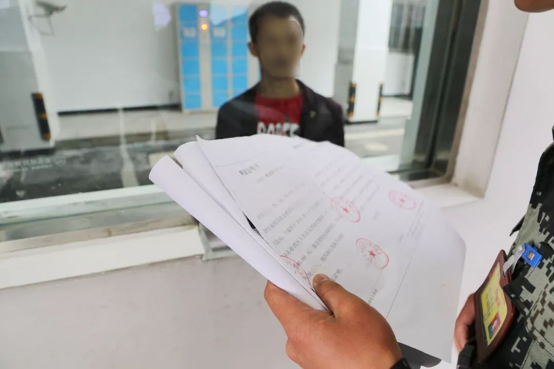 外大门安保人员再次进行信息核对。带送民警在每一次核对时都要签字,填写信息,确保底线安全。