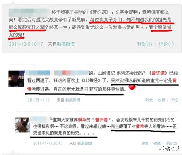 那么,她的这部小说为啥会引起争议呢。理由其实很简单,就是她在小说中把蚩尤写成了为了爱情放弃江山的“英雄”,而黄帝却成了为了权术不择手段,还阻碍他人幸福的“丑恶之徒”。 结果,虽然桐华在小说开头也强调了这只是她自己“脑洞大开”虚构的故事,可一些喜爱她小说的粉丝,在看了这部小说后,还是抛出了“耻为炎黄子孙”、 “我们的祖先是厚颜无耻之辈”、“我们是小人和坏蛋的后代”等偏激的言论。