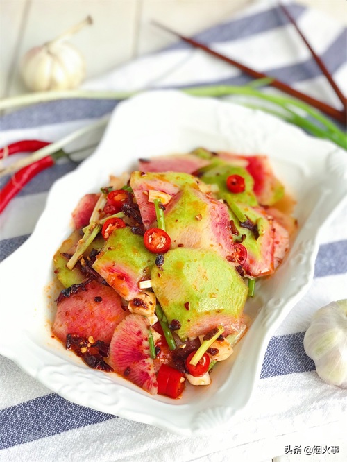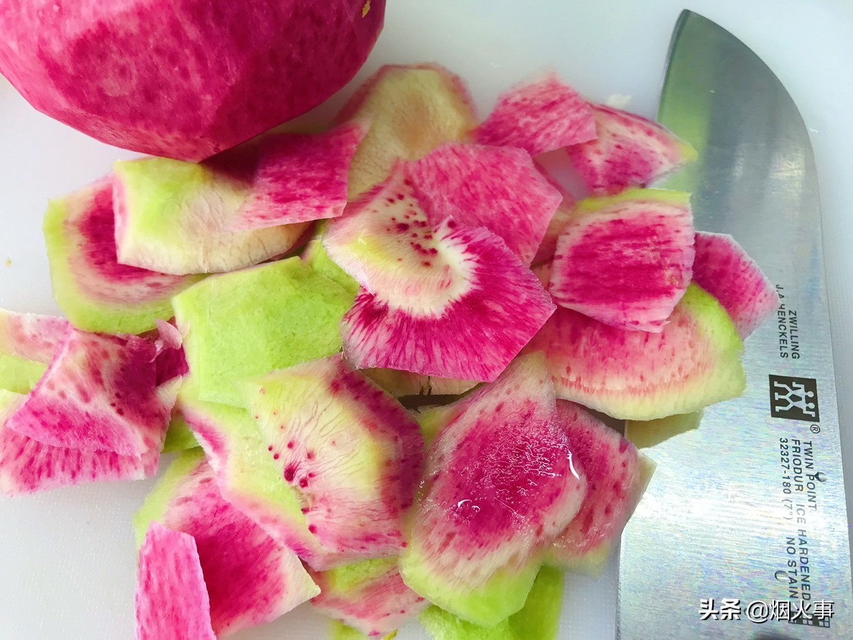 1、拌萝卜皮的萝卜最好选用心里美萝卜,辣中带有甘甜味,口感上也比较清脆。个头选择比较大一点的,因为个头大的萝卜皮比较多,片萝卜皮的时候尽量片得厚一点,这样萝卜皮口感会比较爽脆。