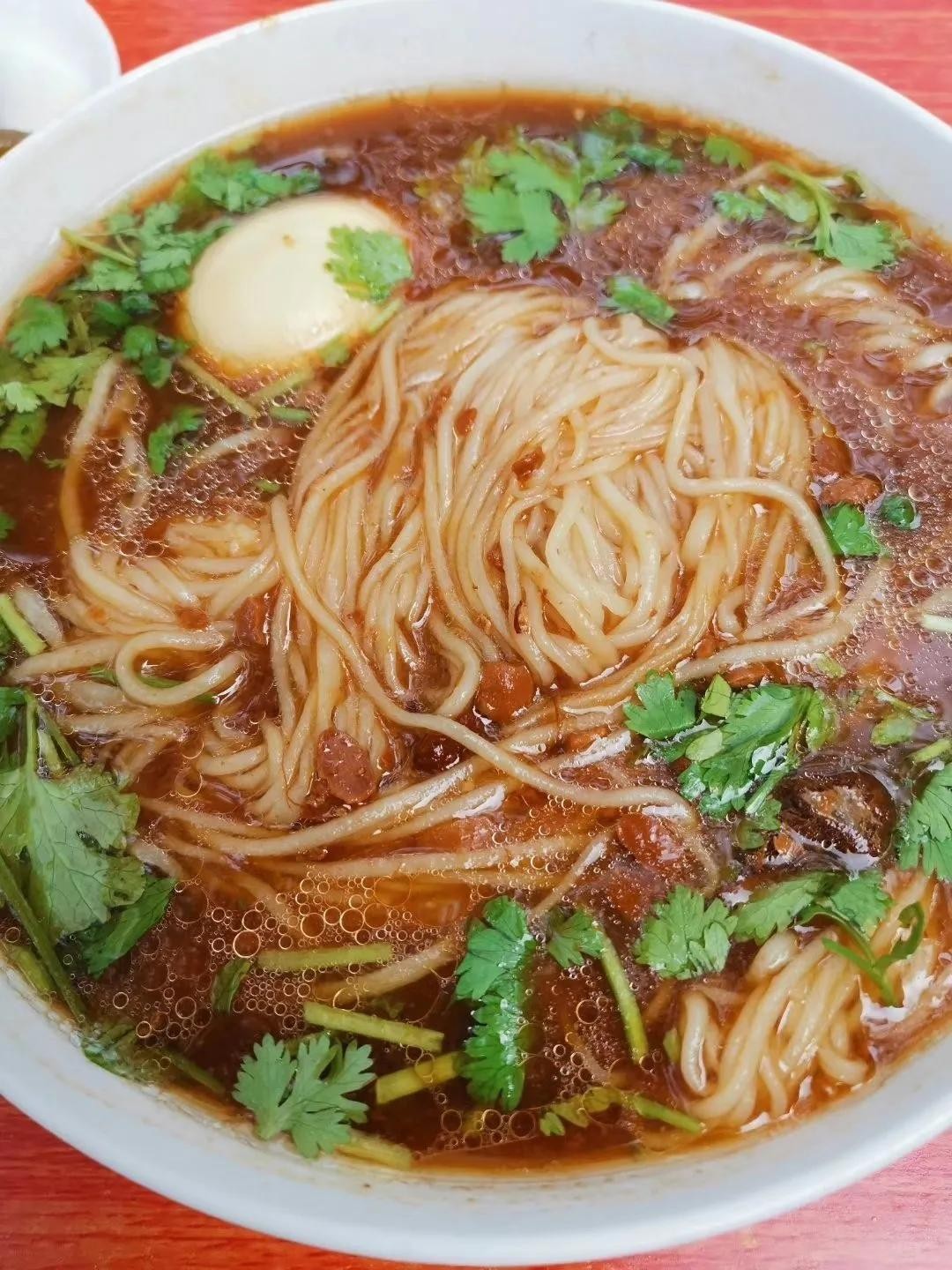 卤料为本地的豆瓣酱配以精选的山羊肉和十几味草药炒制而成。它特点在于面劲道有嚼劲,汤味鲜美,肉质优嫩,有助消化。上到70岁老人,下至3岁孩童都能零负担地享受它的美味。