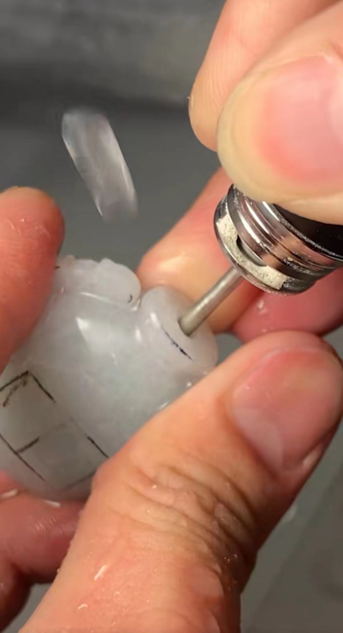 根据预设好的形状切割掉多余的部分,这时候我们可以看出鼻烟壶大致的走势。