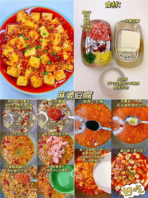 麻婆豆腐:麻辣味浓,豆腐嫩滑,绝对的下饭神器!