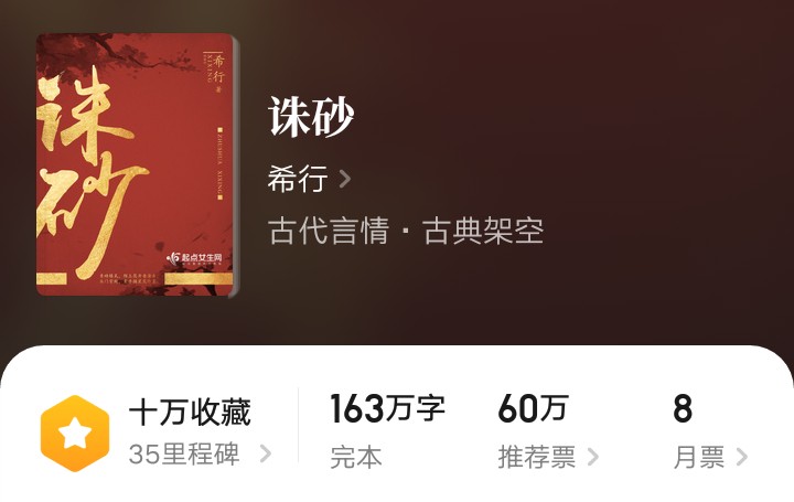 在这次100部优秀网文作品入选国家图书馆,永久典藏的书里面。大神希行,有两本书入选一本是《君九龄》,一本是《诛砂》。对于大神希行,喜欢看女生小说的人都不会陌生,它的简介里面写道:生于燕赵之地,以笔编织五彩灿烂的故事为平淡生活增添几分趣味,爱有一技之长的女主,希望看过故事的女子们能悦之一笑。