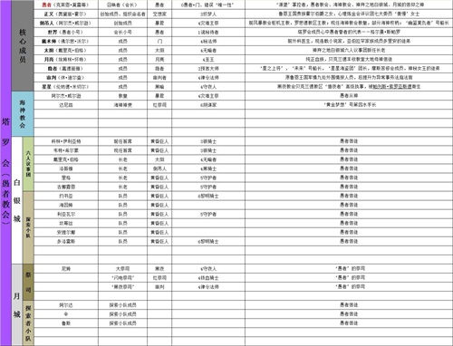 除了这个序列图之外,我还抽空统计了愚者的势力范畴,也就是愚者教会的主要成员,其中包含:塔罗会、海神教会、白银城、月城这4大构成势力,他们被统称为【愚者教会】
