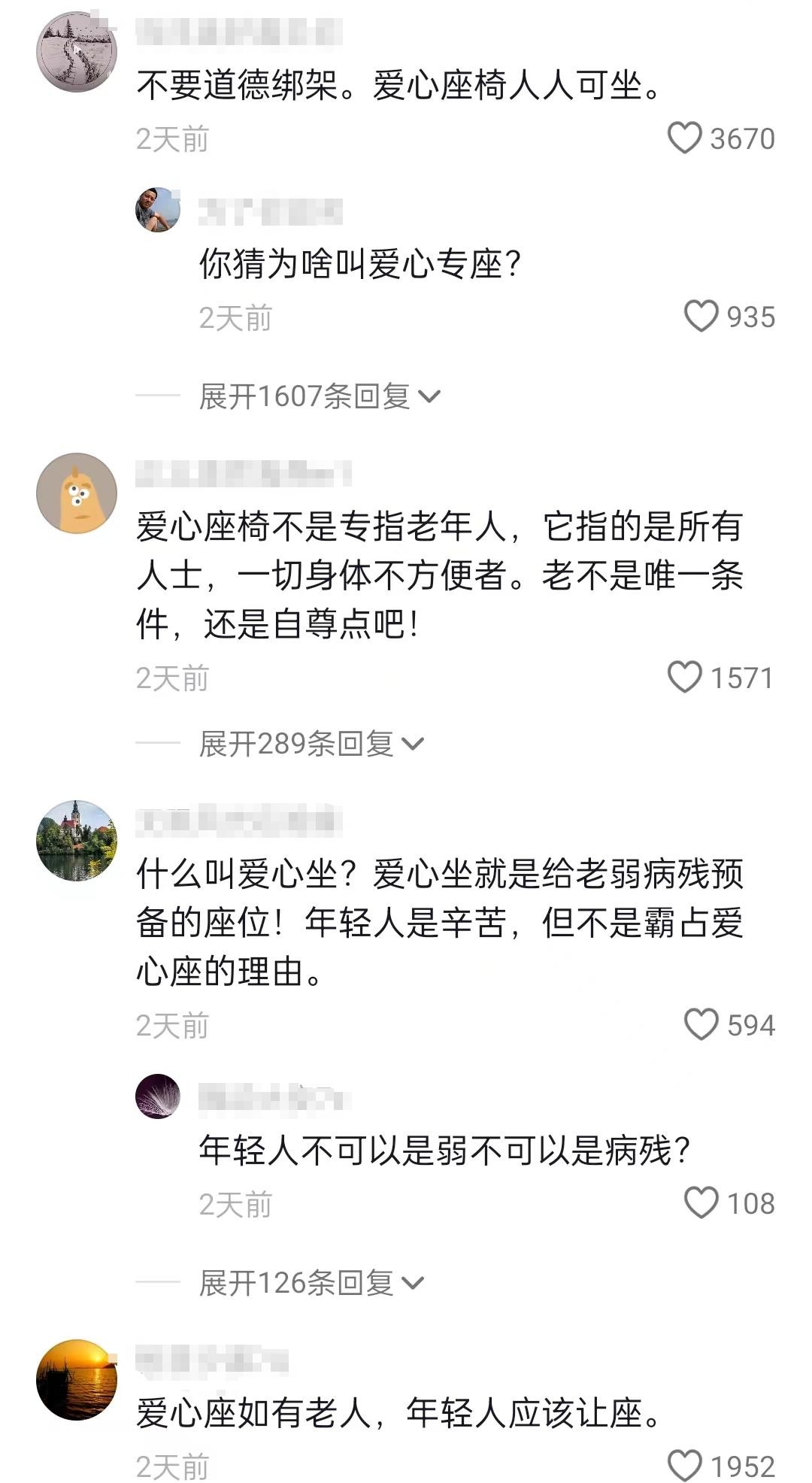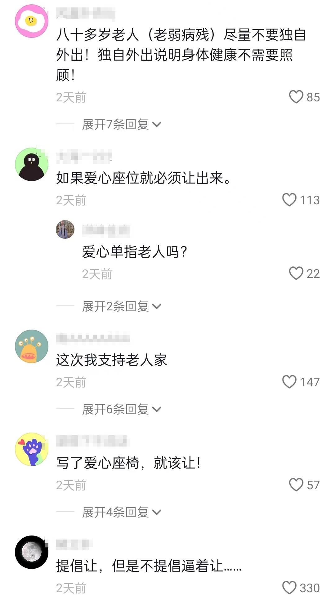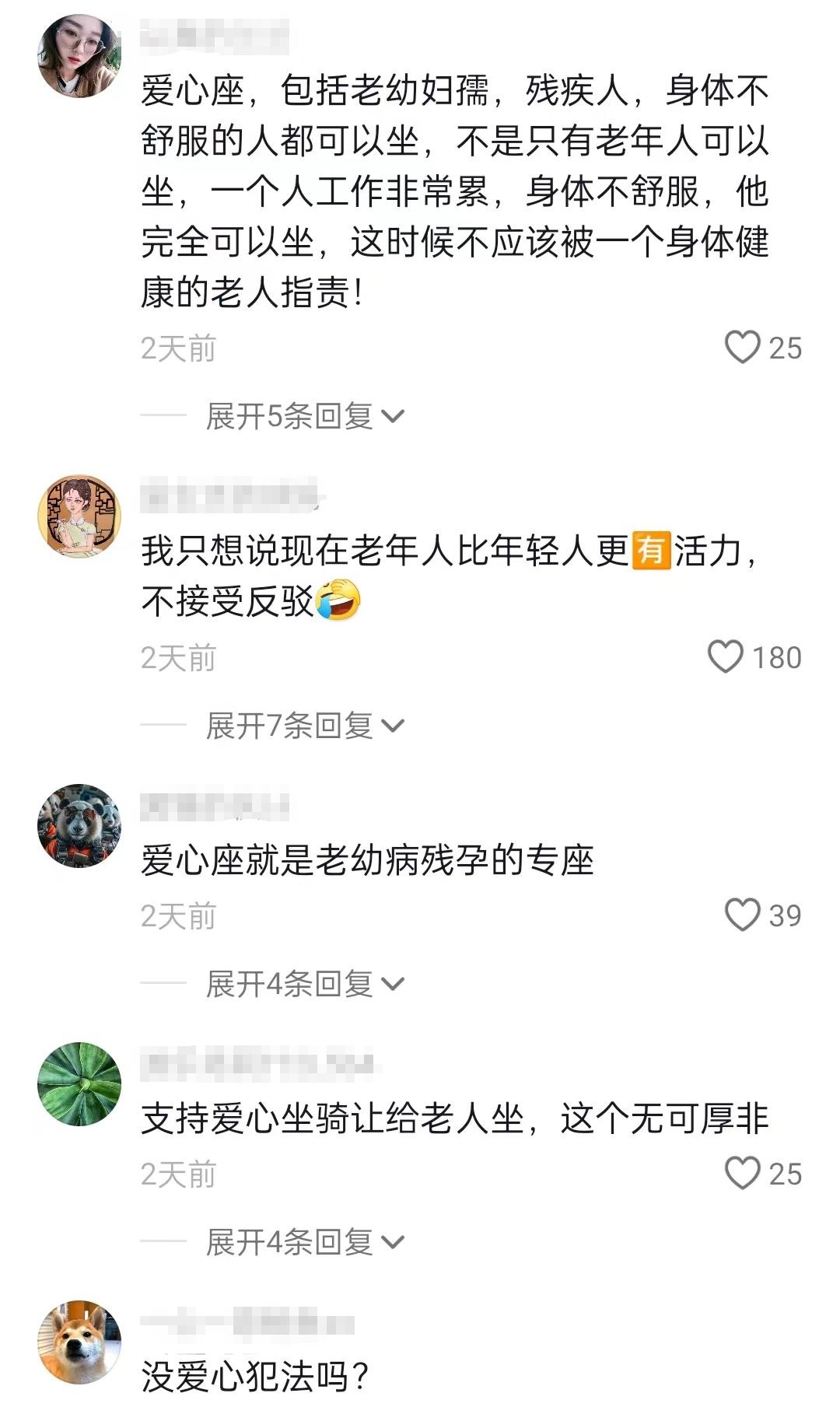 女子坐爱心座旁遇站立老人未让座,遭遇道德质问“于心何忍”,评论区掀起热议风暴