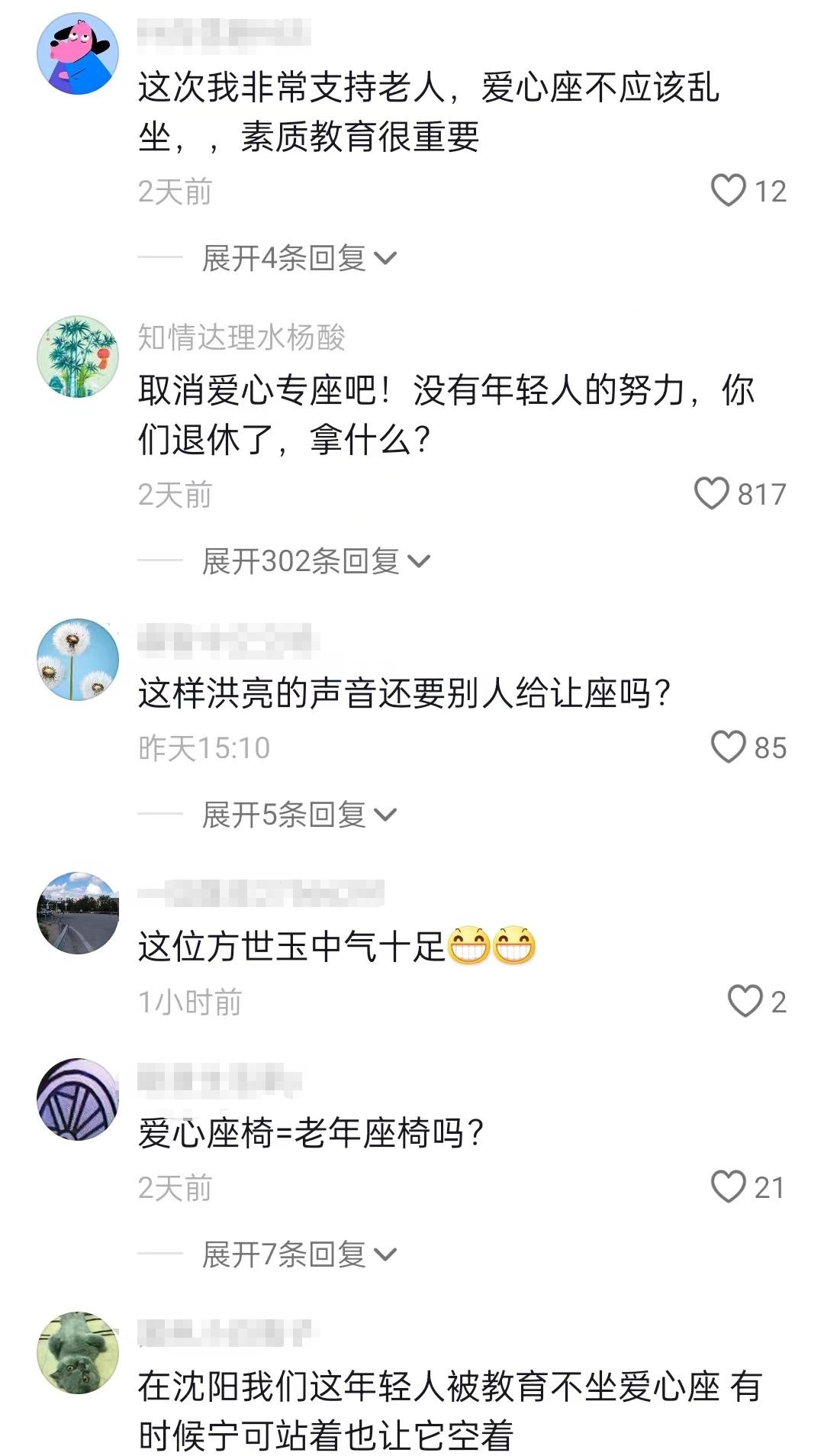 女子坐爱心座身旁站老人,没起身被教育"于心何忍",评论区炸锅