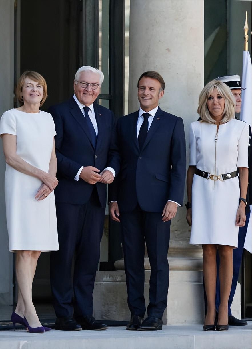 在这场没有硝烟的“战争”中,布丽吉特无疑是法国的王牌。她的小白裙,不仅展现了她的时尚品味,更在细节中透露出法国对于精致生活的追求和对于国际地位的自信。相比之下,德国第一夫人的小白裙虽也优雅,却少了那份挺括与细节感,仿佛预示着在某种程度上,德国在这场外交较量中稍逊一筹。