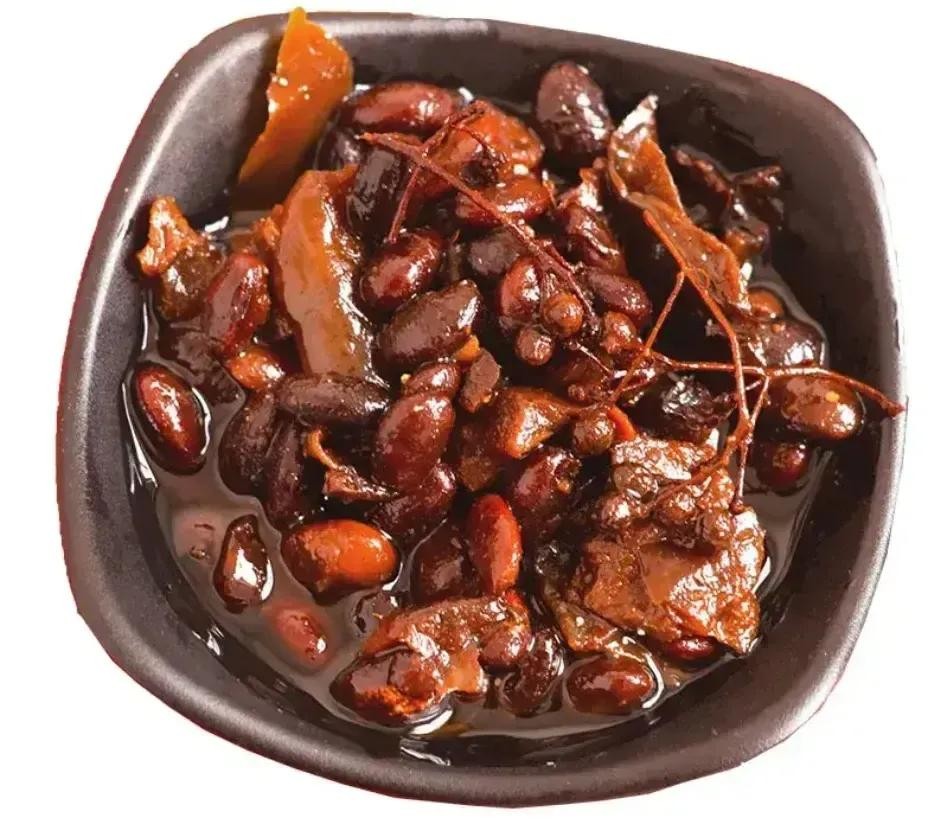 八宝豆豉,临沂有名的特产小吃,曾获有“齐鲁名产、醇厚清香”的美誉。八宝豆豉是用大黑豆、茄子、鲜姜、杏仁、花椒、紫茄叶、香油和白酒八种原料经过160余天发酵而成,因此得名“八宝”,代表着丰收和好运。制好的豆豉粒粒黑豆浑圆饱满,透黑莹亮,清香爽口,咸中带甜,食用也非常方便。