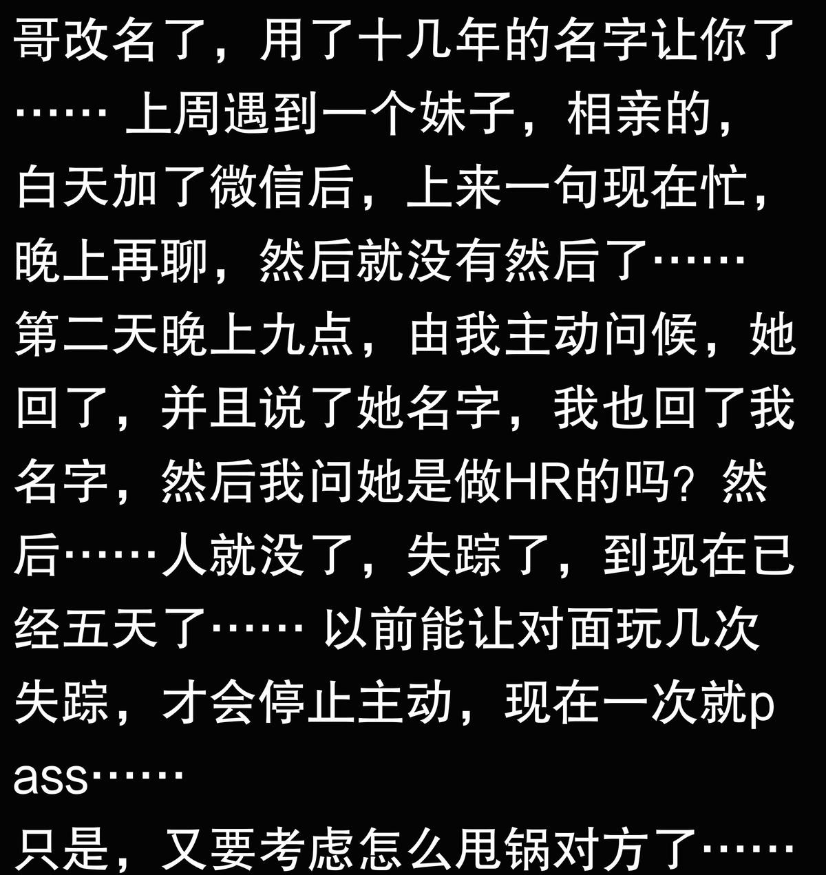 说句难听的,我所有相亲对象都是这样,城府深得很,任何事都要你猜,我也猜得累,记得以前初中处对象那时候也没这么多套路