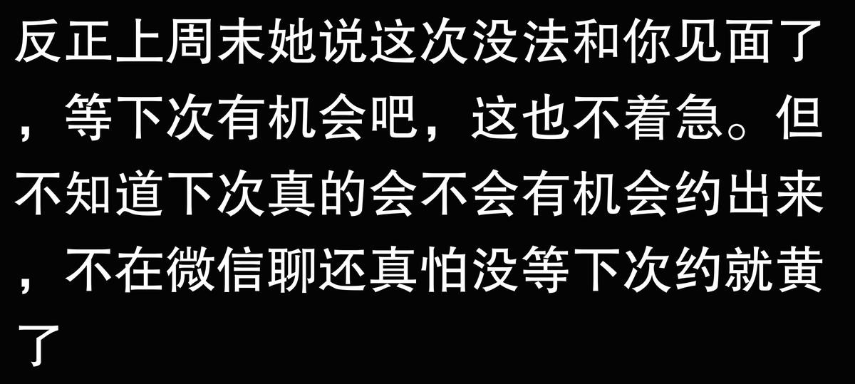 之前相亲一个会计女生,聊天也是爱搭不理的,晚上九点后发消息基本不带回的,第二天看到草草回一下,过了两三个星期她就躺在了我的黑名单里