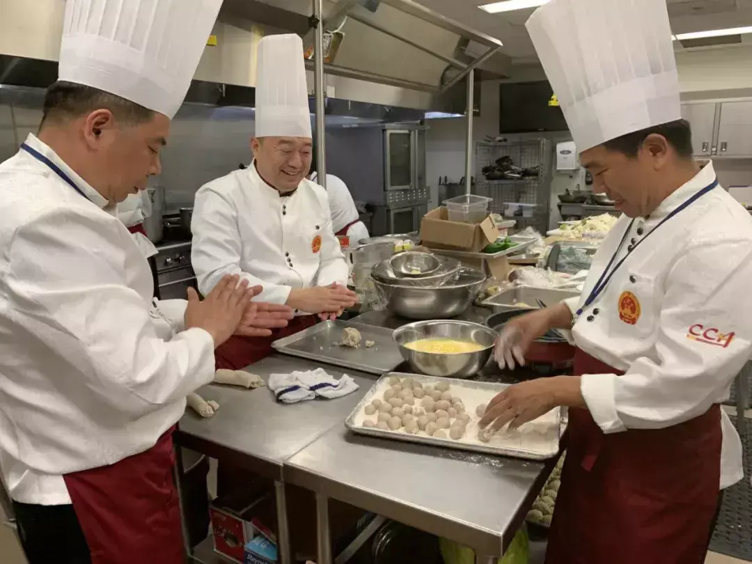 当天晚上,11位中国名厨,展示了代表中国不同地域饮食特色的拿手技艺。他们为宾客献上包括前菜、主菜、拿手菜在内的20多种菜式。烤鸭、东坡牛腩、张飞牛肉、菊花鱼等南北菜肴,应有尽有。活动上还进行了龙须拉面、西瓜大丽花雕刻、拔丝红薯、双色牡丹虾等10项烹饪表演展台展示,让宾客感受到了中华美食文化的博大精深与无穷魅力。