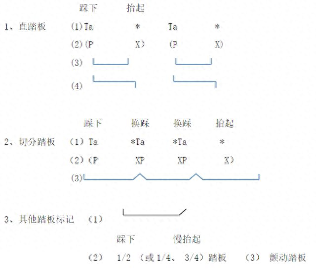在一首乐曲中不是只使用一种踏板方式的,往往要多种踏板方法结合使用,那么什么位置使用什么样的踏板方法呢?