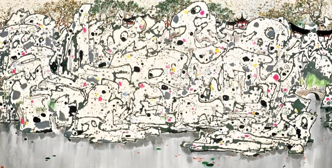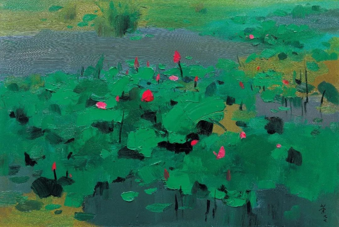 他打破油画与水墨的界限,创造出独特的“水陆兼程”创作方式。