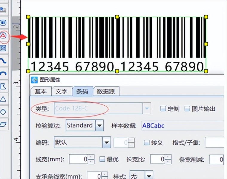 在条码软件中制作电子监管码的时候,通常会利用软件左侧的“绘制电子监管码”图标在软件画布白色界面去进行绘制,而且电子监管码是只有一种条码类型那就是Code128C。