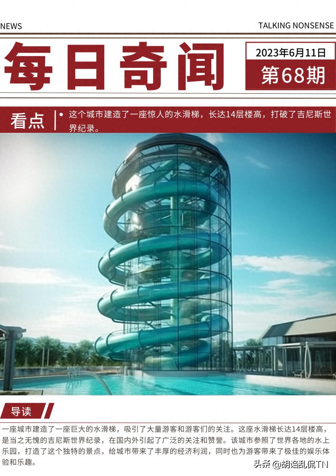 总之,这座14层高的水滑梯的建造在城市旅游业和经济活动中起到了巨大的作用,吸引了大量游客和媒体的关注。这座水滑梯也被认为是城市发展中一个惊人的里程碑,向人们展示了城市在旅游和创新方面的强大潜力和实力。