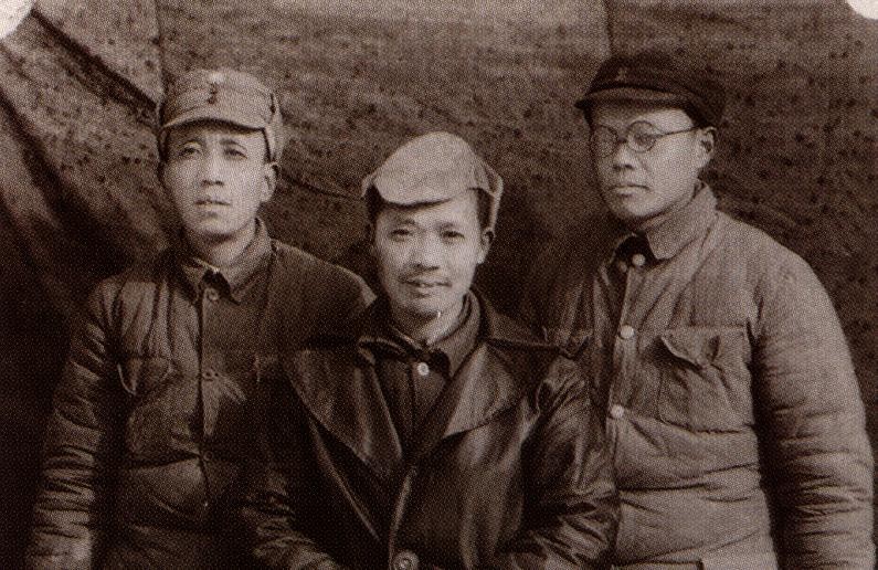 沈鸿(1906-1998),中国著名机械工程专家,中国科学院院士。抗日战争时期,担任延安茶坊兵工厂总工程师,荣获陕甘宁边区特等劳模称号。图为沈鸿(中)在延安留影。