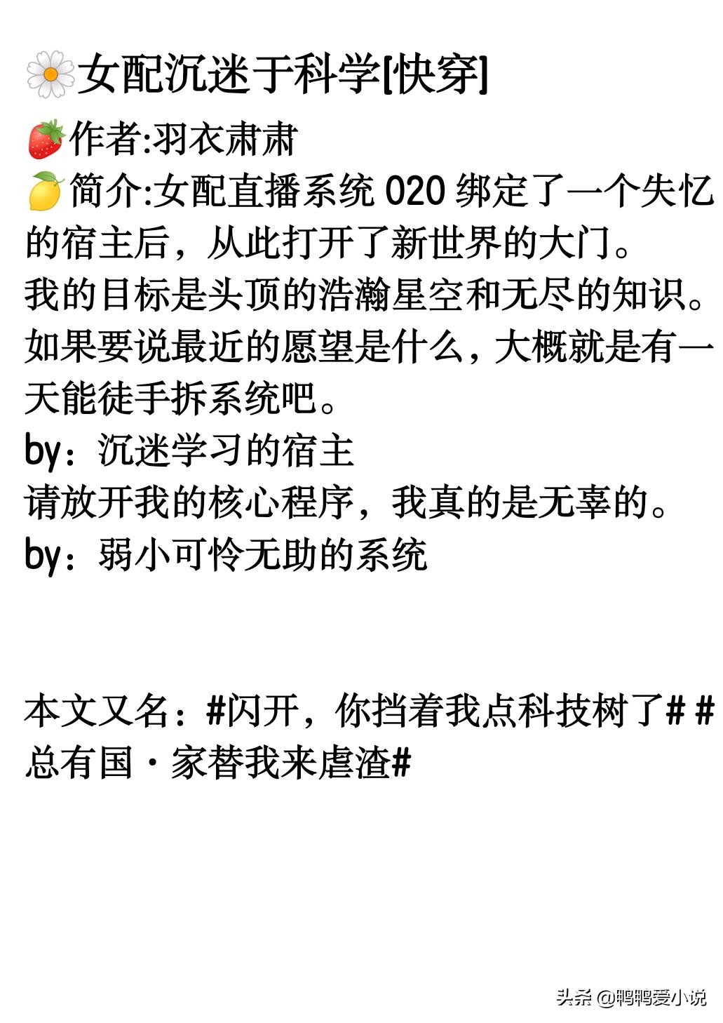 简评:这本书是被书名耽误了吧,看着像狗血小言,其实它真的是科技文,轻松又热血,男主存在感低下。