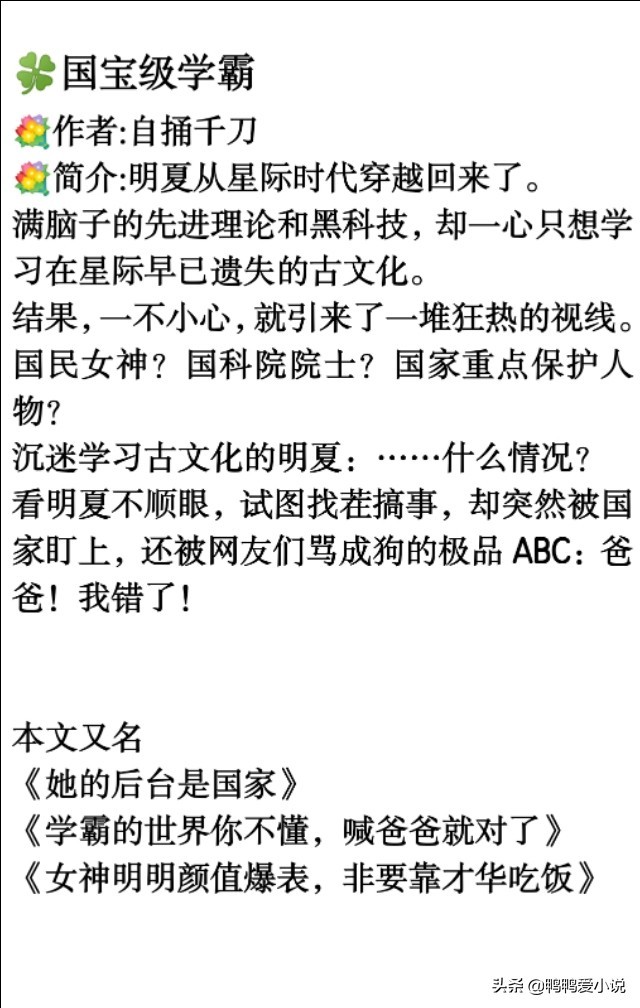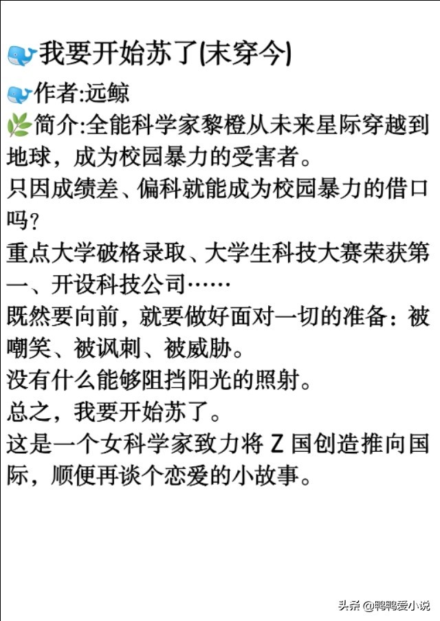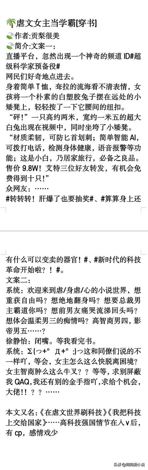学霸科研型女主文:《国宝级学霸》《虐文女主当学霸》