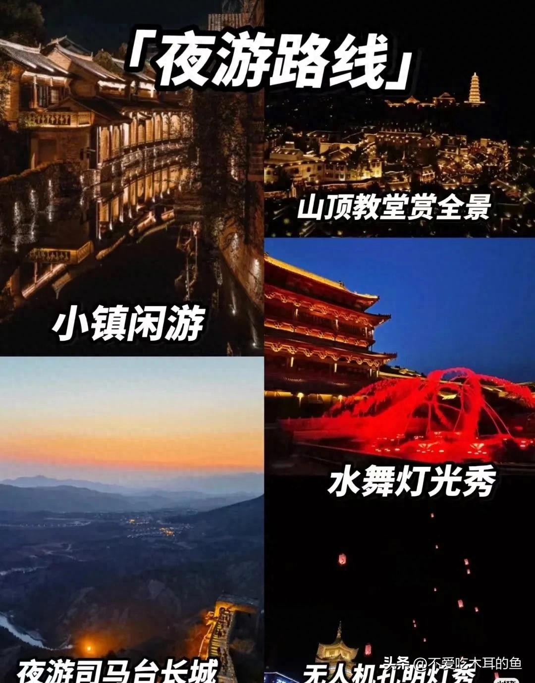 3. 景点:游览古北水镇,可以参观司马台长城、古北水镇夜景、杨家大院、永顺染坊等。司马台长城是明代长城的精华部分,可以体验登长城的乐趣。