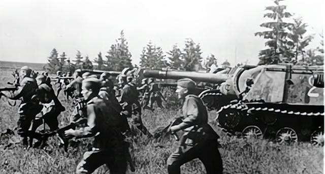 苏军在坦克的掩护下,向日本关东军阵地发起冲锋