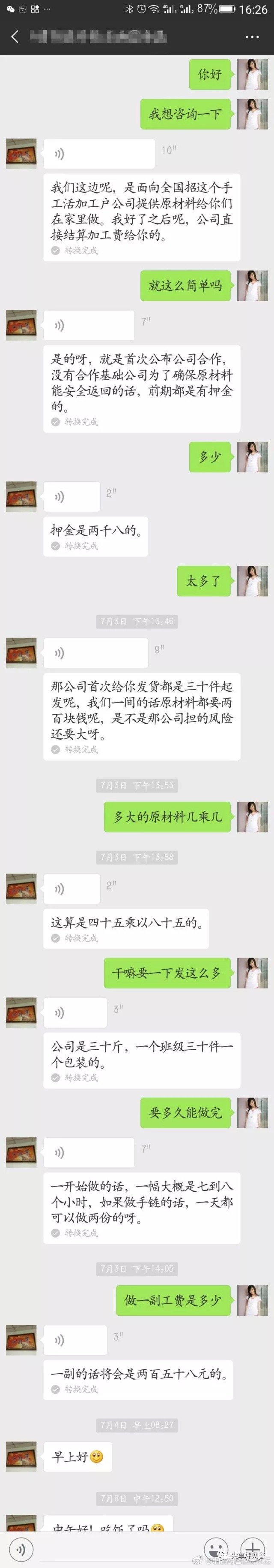 “钻石画”骗局,让你一步步落入陷阱本想利用空闲时间,通过互联网寻找致富门路,不想却掉进网络代加工的骗局,被骗去上千元钱。市民小秦想利在家的闲暇时间找点活做,网上发布的代加工的工作吸引了她的眼球,收入也不错。她通过在网上一番查找后,锁定了一家钻石画代加工公司。便通过网站上所留的客服电话和微信与对方取得联系。一个自称是“张经理”的人告诉小秦,这个手工活加工户公司提供原料在家里做,加工完后,统一收回,再结算加工费,但是要先缴纳2800元“押金”。“张经理”见小秦在付押金上产生了迟疑,便及时解释道“这样做公司也要承担风险”。小秦经过盘算,认为长期做能挣不少钱,便将2800元打给了对方,对方邮寄给小秦一些用来加工的原材料。原以为这样就可以通过代加工赚钱了,让小秦没想到的是,当她按照对方要求,加工好水晶钻石画后,对方却称没有通过公司的检验,并给出了返工和重发订单两种解决办法,但是返工时间上会来不及,重发订单要到付308,且难度更大。眼见辛苦白费,又挣不到钱,小秦想退出,想退回押金,对方却称只有做合格了才能拿到押金。此时小秦发觉就算再次加工也会称没有通过检验,认为自己已经被连环诈骗,便及时报警。 通过网络发布虚假代加工信息,是近几年新兴的一种电信诈骗手段,主导这类诈骗案件的犯罪嫌疑人往往拥有看似正规的网站,让群众真假难辨。烟台网警提醒大家,警惕网络代加工陷阱,对网络上“小投资、高回报”之类的代加工信息不要盲目轻信,要仔细甄别该公司资质、信誉度等信息,最好能进行实地考察。而遇到对方要求先汇款时,更要提高警惕,最好咨询公安部门,以免一步步落入陷阱,造成更大的损失。一旦发觉被骗,务必第一时间报警。