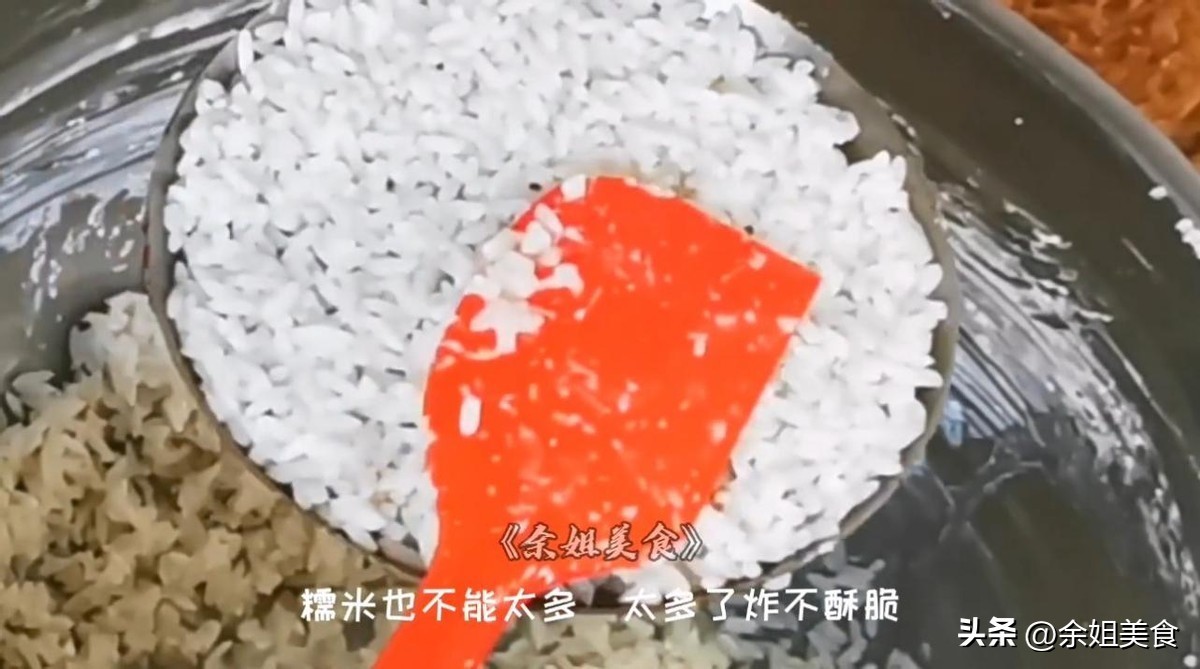 糯米不能太多,太多了炸不酥脆,也不能太少,太少了在炸的时候容易散。