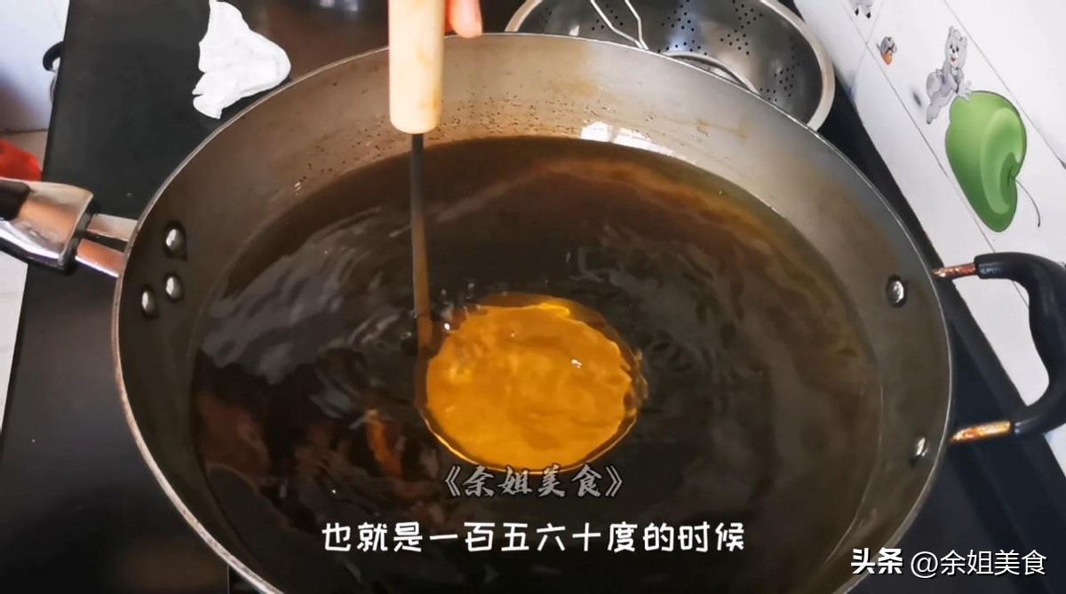 9,全程把油温控制在一百六十度左右,小火慢炸,炸至金黄时就可以捞出了。