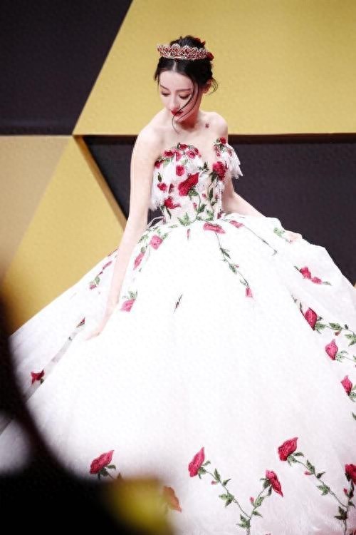 8. 在某电视剧开播仪式上,迪丽热巴选择了一件由蓬松纱质与精致刺绣相结合的裙装,散发着优雅与风情。