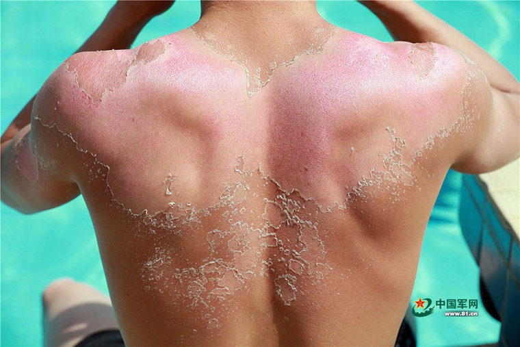 酷暑之中,特战队员开展游泳集训,经过烈日的暴晒和池水的洗礼,他们的后背都镶上了一枚枚别样的“勋章”。