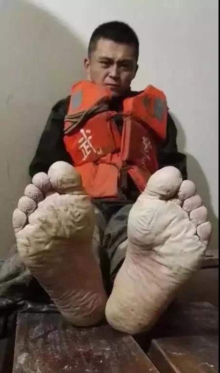 这是一名参加抢险救灾的战士的脚,在泥水里摸爬滚打了十几个小时后,留下了这张震撼人心的照片。这双脚,也正是无数军人千千万万双脚的缩影。